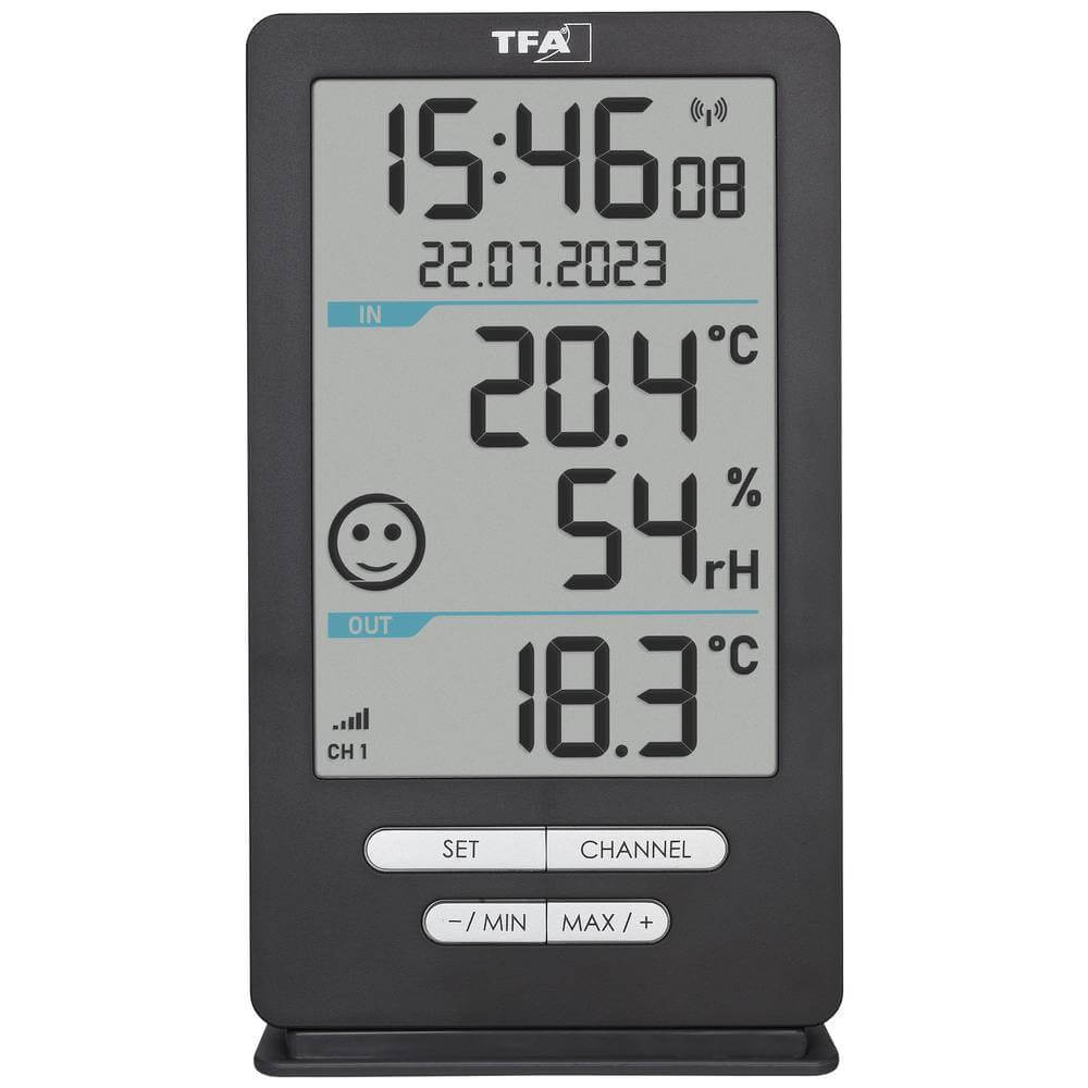 Bezdrátový teploměr TFA XENA HOME představuje kompletní řešení pro monitorování klimatických podmínek ve vašem domově i venku. Tento pokročilý přístroj kombinuje měření venkovní teploty s kontrolou vnitřní teploty a vlhkosti, přičemž všechny údaje zobrazuje přehledně na jednom místě. Zařízení je vybaveno přesným DCF signálem pro automatické nastavení času a data, což zaručuje přesnost zobrazených informací. Bezdrátový teploměr dokáže přijímat signál až ze 3 bezdrátových čidel současně, přičemž jedno je již součástí balení.