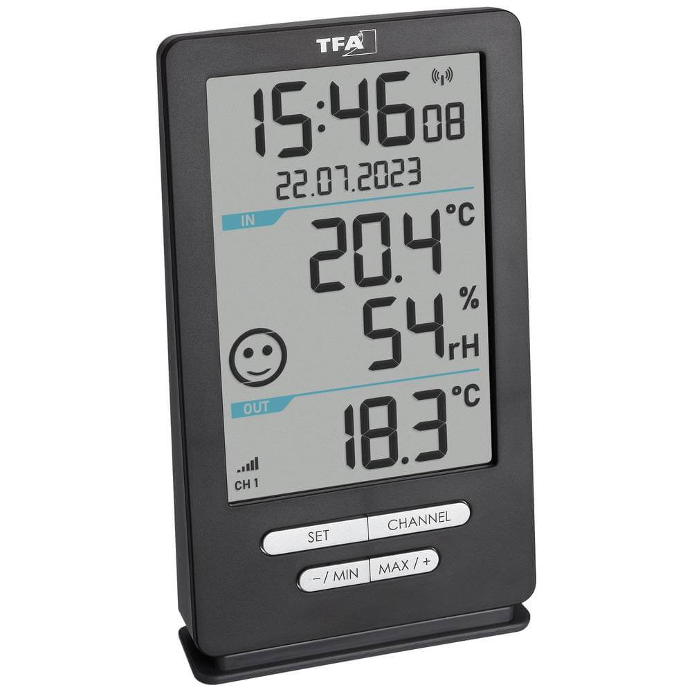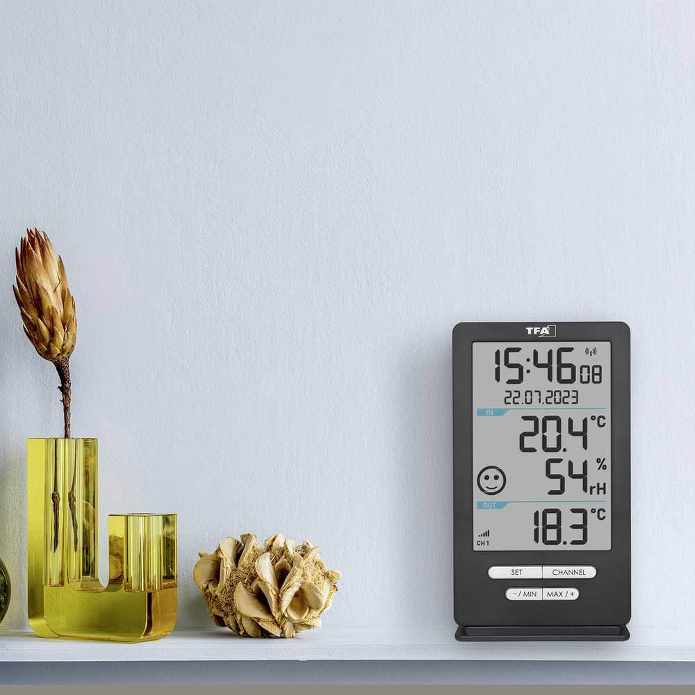 Jedinečnou vlastností tohoto teploměru je inteligentní vyhodnocování vnitřního klimatu. Přístroj analyzuje kombinaci teploty a vlhkosti a na základě optimálních hodnot pro lidské zdraví a komfort zobrazuje jednoduché ikony v podobě smajlíků. Zelený smajlík signalizuje ideální podmínky, zatímco jiné ikony upozorňují na příliš suché, vlhké, teplé nebo chladné prostředí. Tato funkce je obzvláště užitečná pro rodiny s dětmi, seniory nebo osoby s respiračními problémy.