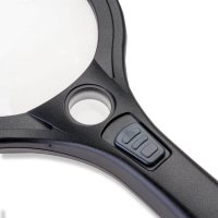 Zvětšovací lupa se zabudovaným LED osvětlením má 2x zvětšení s 7x násobnou čočkou. Obraz je jasný a nezdeformovaný, uvedené zvětšení je garantováno výrobcem po celé ploše čočky. Baterie 2 AAA nejsou součást balení.