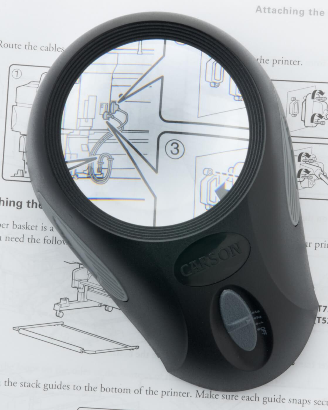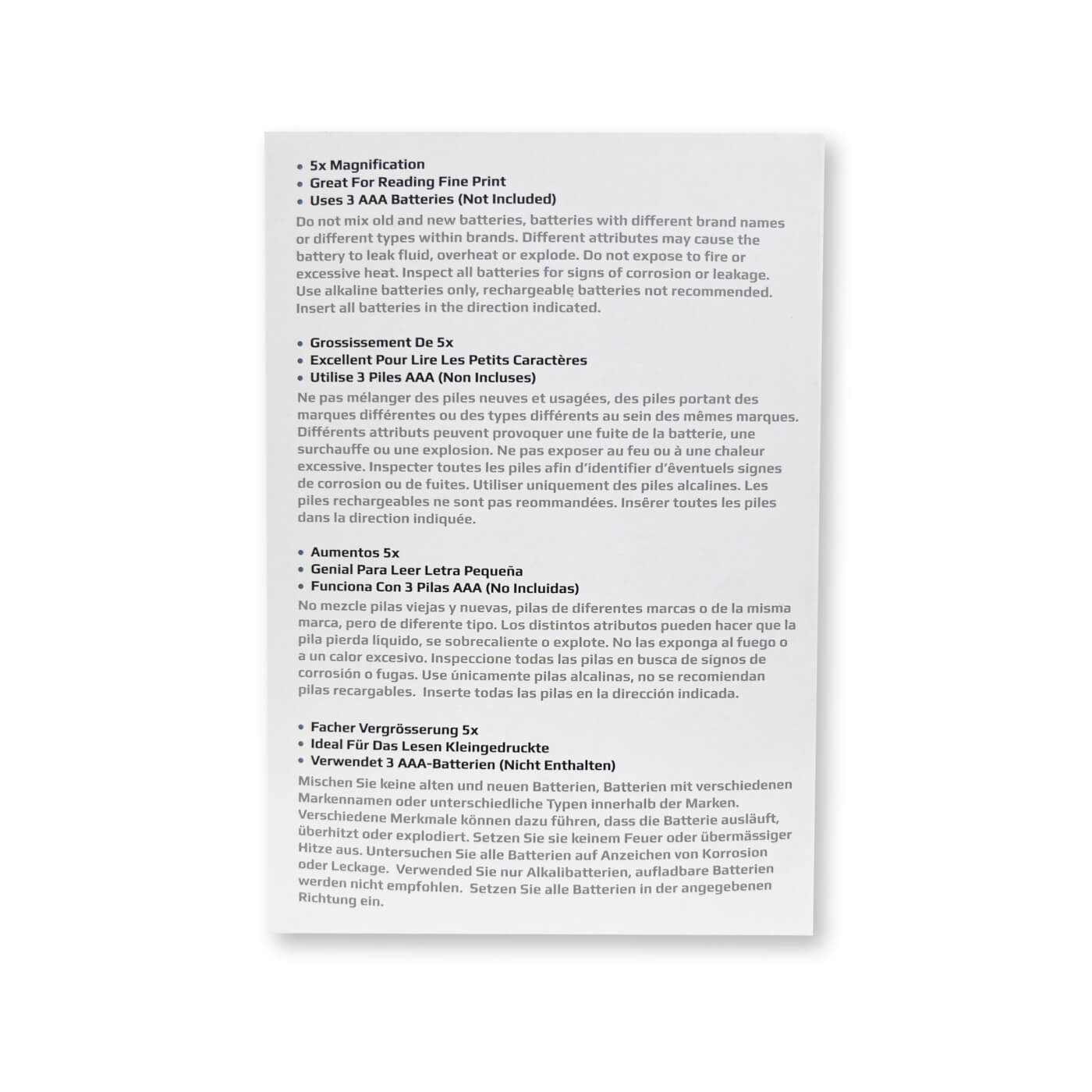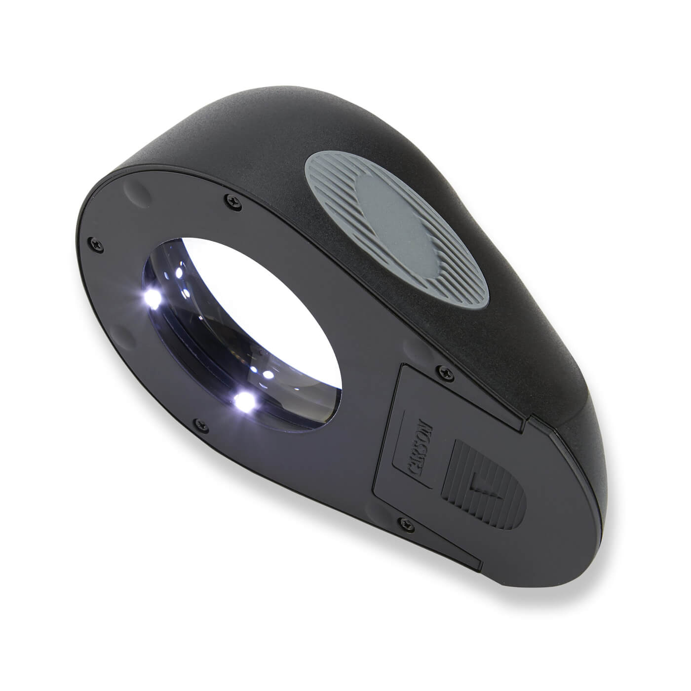 Čočka je předzaostřená, nabízí 5x zvětšení. Použití je velmi rychlé a snadné, stačí jen lupu umístit nad pozorovaný objekt. Dostatek světla je zajištěno 6 silnými LED diodami, u kterých lze nastavit 3 stupně jasnosti světla.
