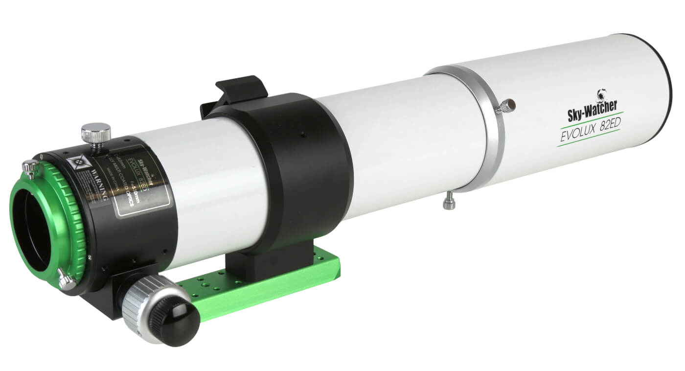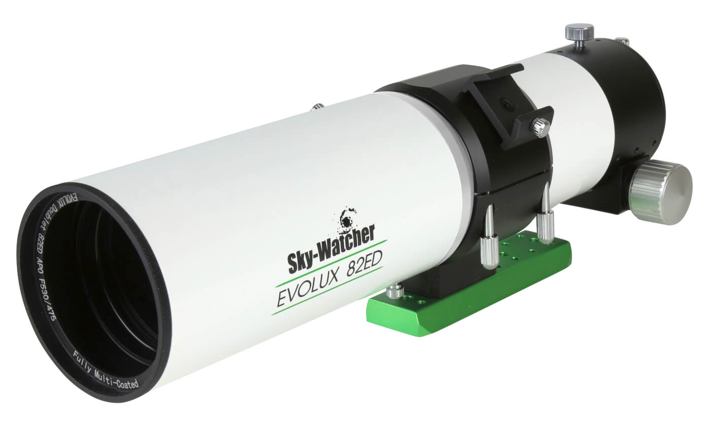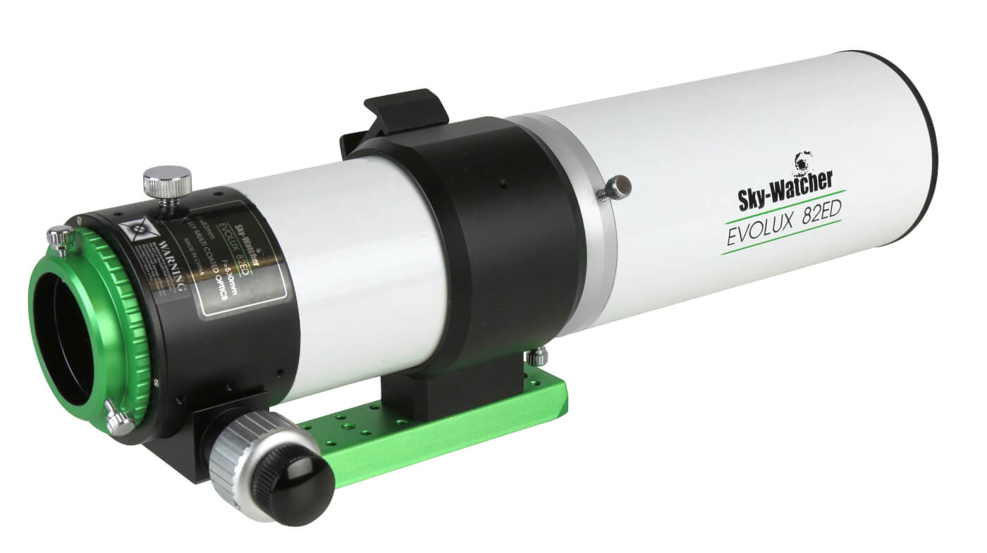 Sky-Watcher Evolux 82ED je nástupcem oblíbeného modelu Evostar 80ED a představuje kompaktní, vysoce přenosný apochromatický refraktor určený zejména pro širokouhlou astrofotografii a pozorování hlubokého vesmíru . Oproti předchozím sériím Evostar a Esprit bylo použito zcela nové nízkodisperzní ED sklo, což si vyžádalo kompletní přepracování optického systému - nikoliv pouze výměnu čoček. Výsledkem je dvoučočkový apochromatický objektiv s průměrem 82 mm, ohniskovou vzdáleností 530 mm a světelností f/6,4, s plným FMC (plně vícevrstvým) antireflexním povlakem.