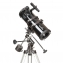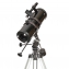 Teleskop Sky-Watcher 114/500 EQ-1 s průměrem objektivu 114 mm je kompaktní a díky své zmenšené trubici snadno přenosný hvězdářský dalekohled. Rovníkovou montáž EQ1, na které je dalekohled nainstalován, lze doplnit o hodinový strojek zajišťující automatické sledování vyhledaného objektu.