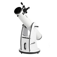 S tímto dalekohledem v kombinaci s Dobson montáží jsem velmi spokojen. Nic stabilnějšího v této cenové relaci prostě není. K základnímu vybavení jsem si pořídil ještě Barlow čočku 2x. Vícenásobné zvětšení už nemá cenu. Při hodně jasném Měsíci je dobrý Měsíční filtr. Výtah na okulár potřebuje trochu péče pro seštelování (vazelína na 3 kontaktní pásky a dva červíky u aretace se musejí utáhnout a kluzné pásky namazat tak aby se ještě zvedal okulár ). Ale při běžné údržbě toto není žádný problém). Pozor tento dalekohled už není žádné tintítko.