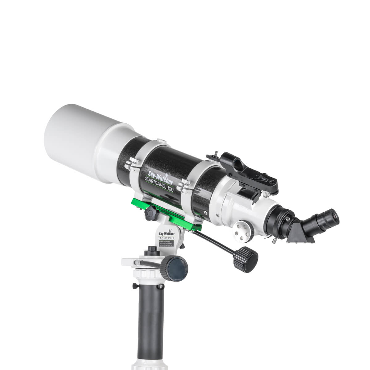 Refraktor achromatický Sky-Watcher 120/600 AZ Pronto s průměrem objektivu 120 mm a ohniskovou vzdáleností 600 mm. Velká apertura vzhledem k refraktoru a poměrně krátká ohnisková vzdálenost umožňují tomuto teleskopu získat velmi široké zorné pole. Díky tomu je ideální volbou pro ty, kteří chtějí obdivovat rozsáhlé otevřené hvězdokupy, mlhovinové objekty nebo celé části Mléčné dráhy. Teleskop je poměrně lehký, a jeho kompaktní rozměry zajišťují snadný transport i skladování. Tento model je také vhodný pro začínající pozorovatele noční oblohy, přičemž velké zorné pole usnadňuje vyhledávání objektů na nebi.