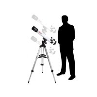 Dalekohled je osazen nastavitelným hliníkovým stativem, který zajišťuje stabilní základ a výrazně minimalizuje nežádoucí vibrace. Díky tomu zůstane váš pohled do okuláru klidný a ostrý - přesně tak, jak má být při pozorování vzdálených nebeských těles. Azimutální montáž s jemnými posuvy v obou osách je pak skutečnou třešničkou na dortu: sledovat pomalu se pohybující objekt na obloze je s ní hračkou a oceníte ji zejména ve srovnání se základními modely dalekohledů bez tohoto vybavení.